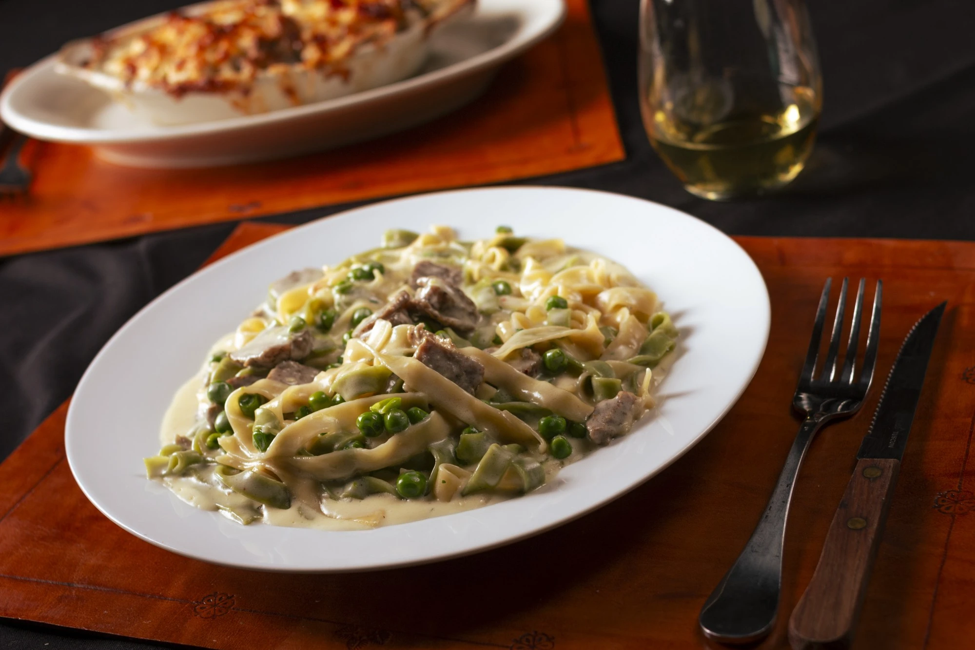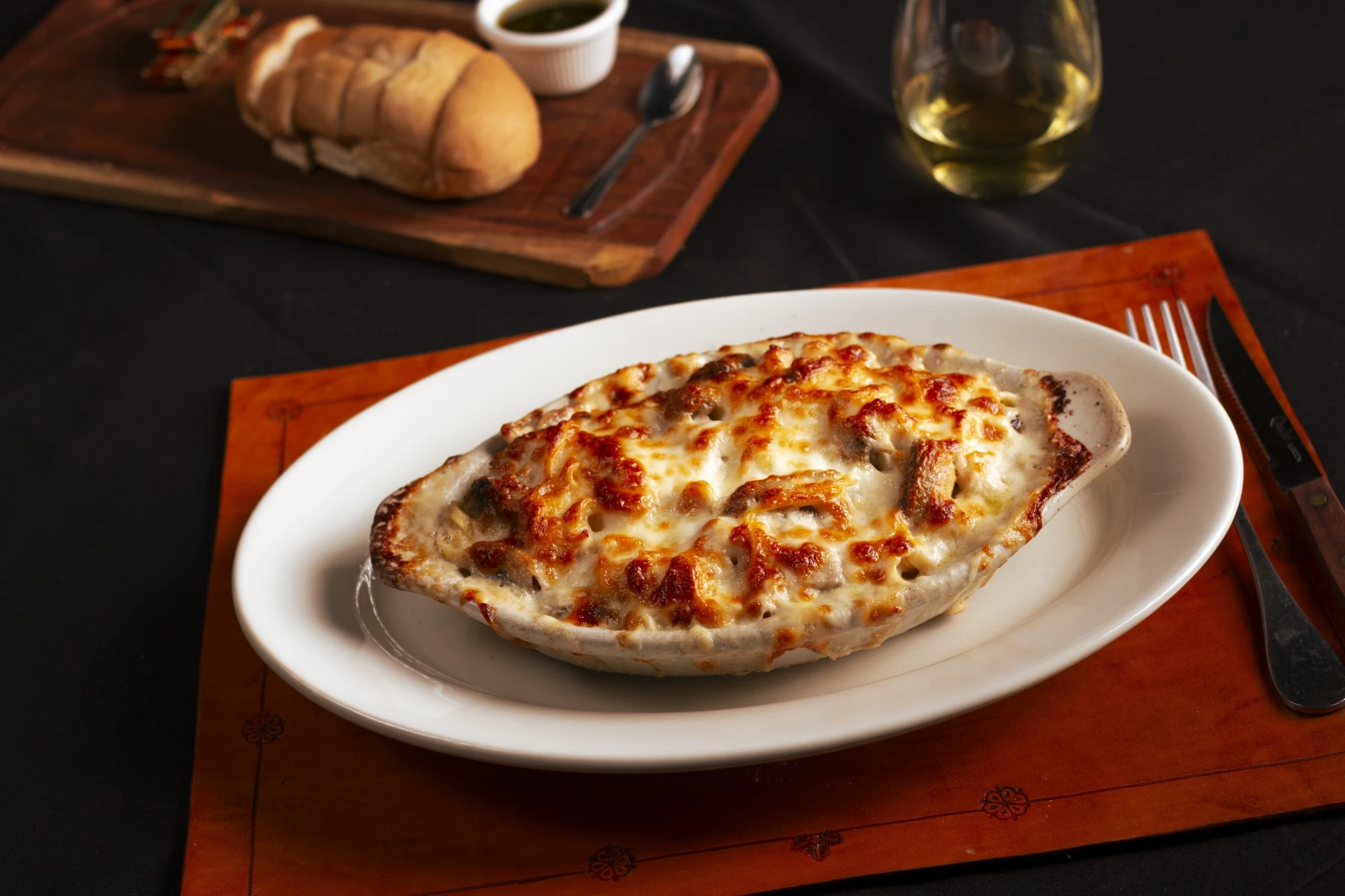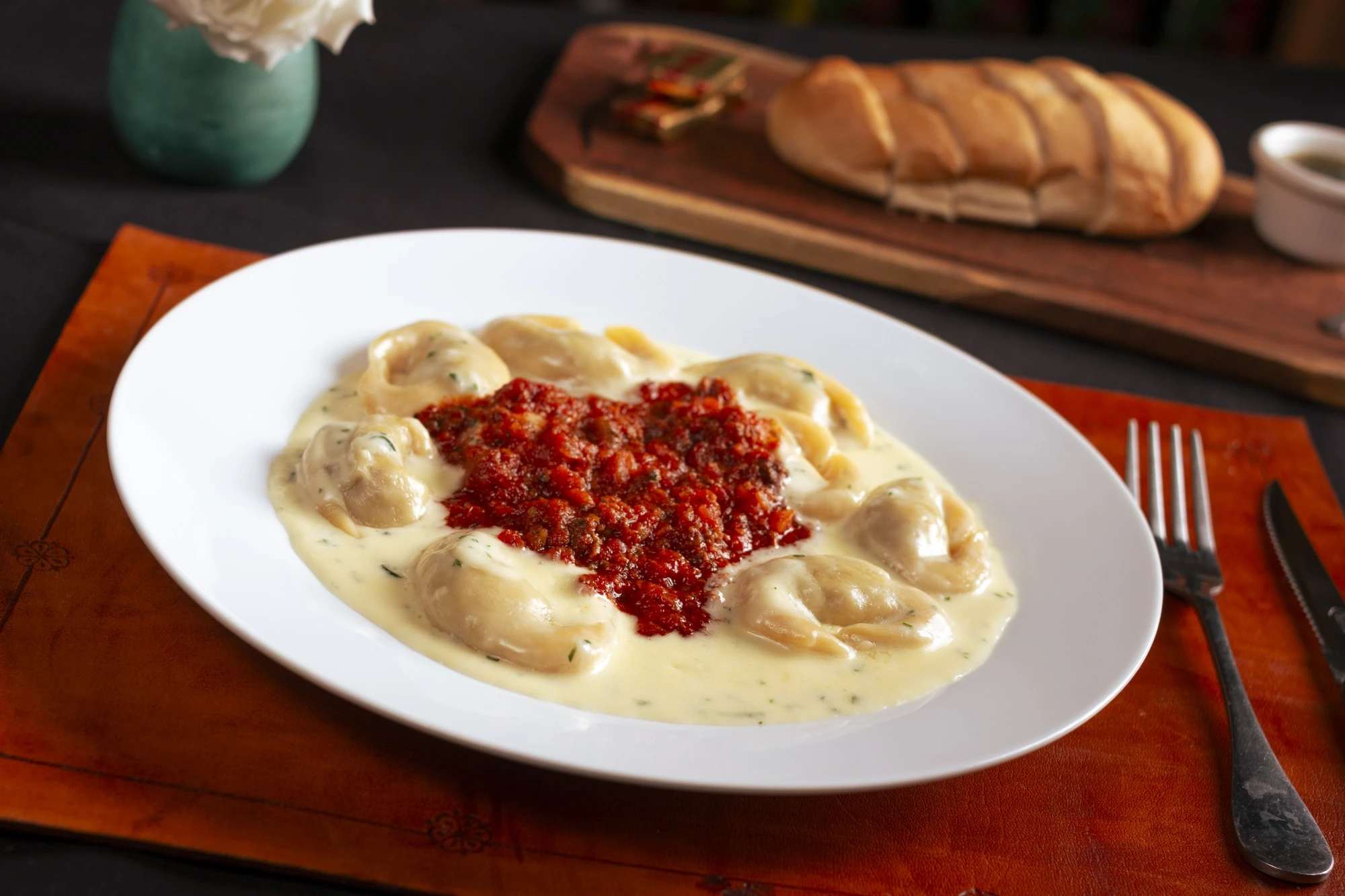 Crafted from start to finish right in our kitchen, our handmade tortellini are filled with tender, seasoned beef, coated in velvety Alfredo sauce, and topped with just a touch of our hearty meat sauce.