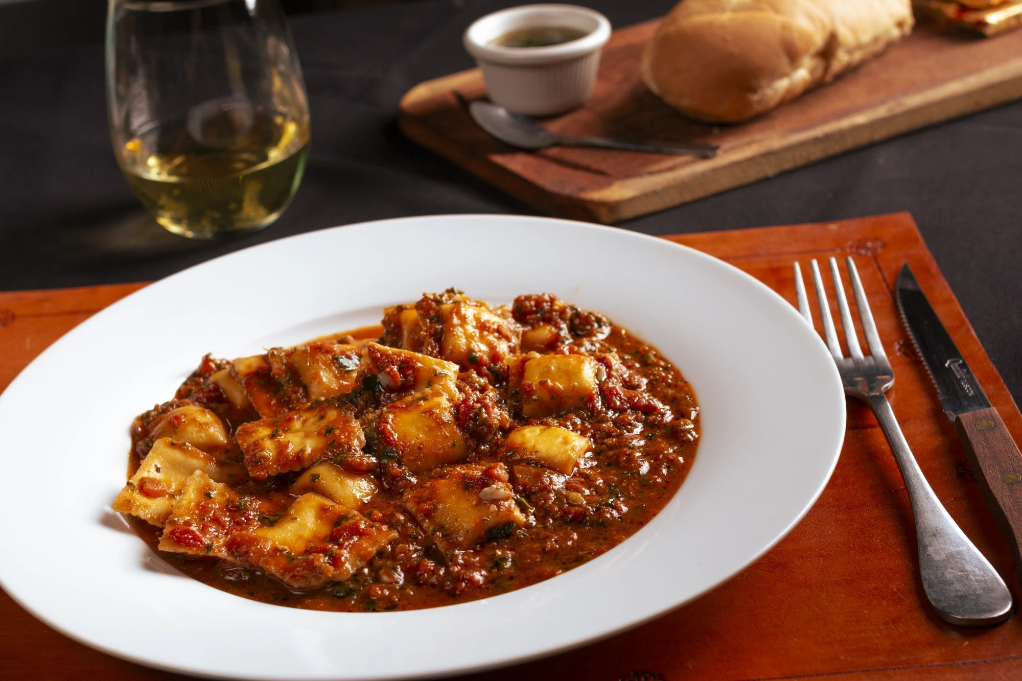 A true nod to our roots from Argentina, this dish celebrates the timeless flavors passed down through generations of Italian families who made Argentina their home. Our small, homemade ravioli– known in Argentina as ravioles–are crafted in-house and filled with ricotta, and finished with a fragrant basil pesto and a rich, slow-cooked marinara (tuco).