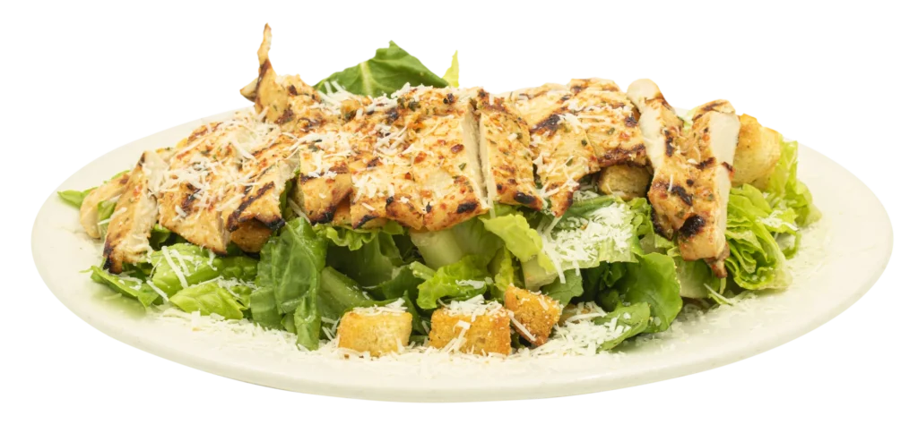 A classic Caesar salad made with crisp romaine lettuce, tossed in creamy Caesar dressing and topped with shredded Pecorino Romano, crunchy croutons, and juicy grilled chicken breast.
