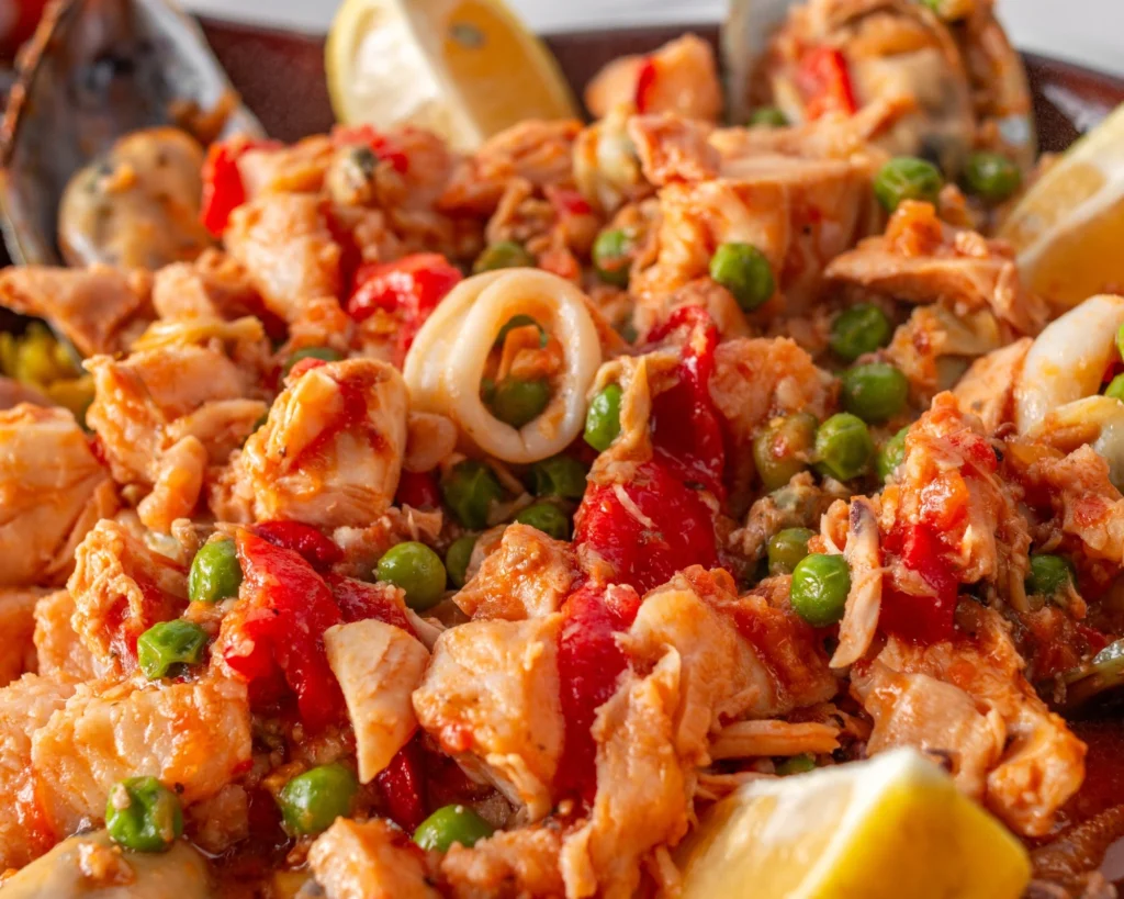 A rustic Italian soup that combines tender egg noodles with butter beans in a savory chicken broth. The addition of pesto and marinara sauce enhances the dish with a bold, herbaceous flavor.